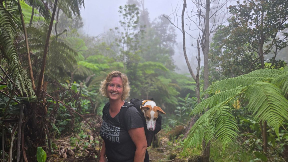 I live in Captain Cook (South Kona), together with my bestie, my dog Kala, who accompanies me everywhere. Kala is 2 years old and has three legs. She runs up hill super fast to jump in the backpack for the way down. She is a happy girl! You'll love her.